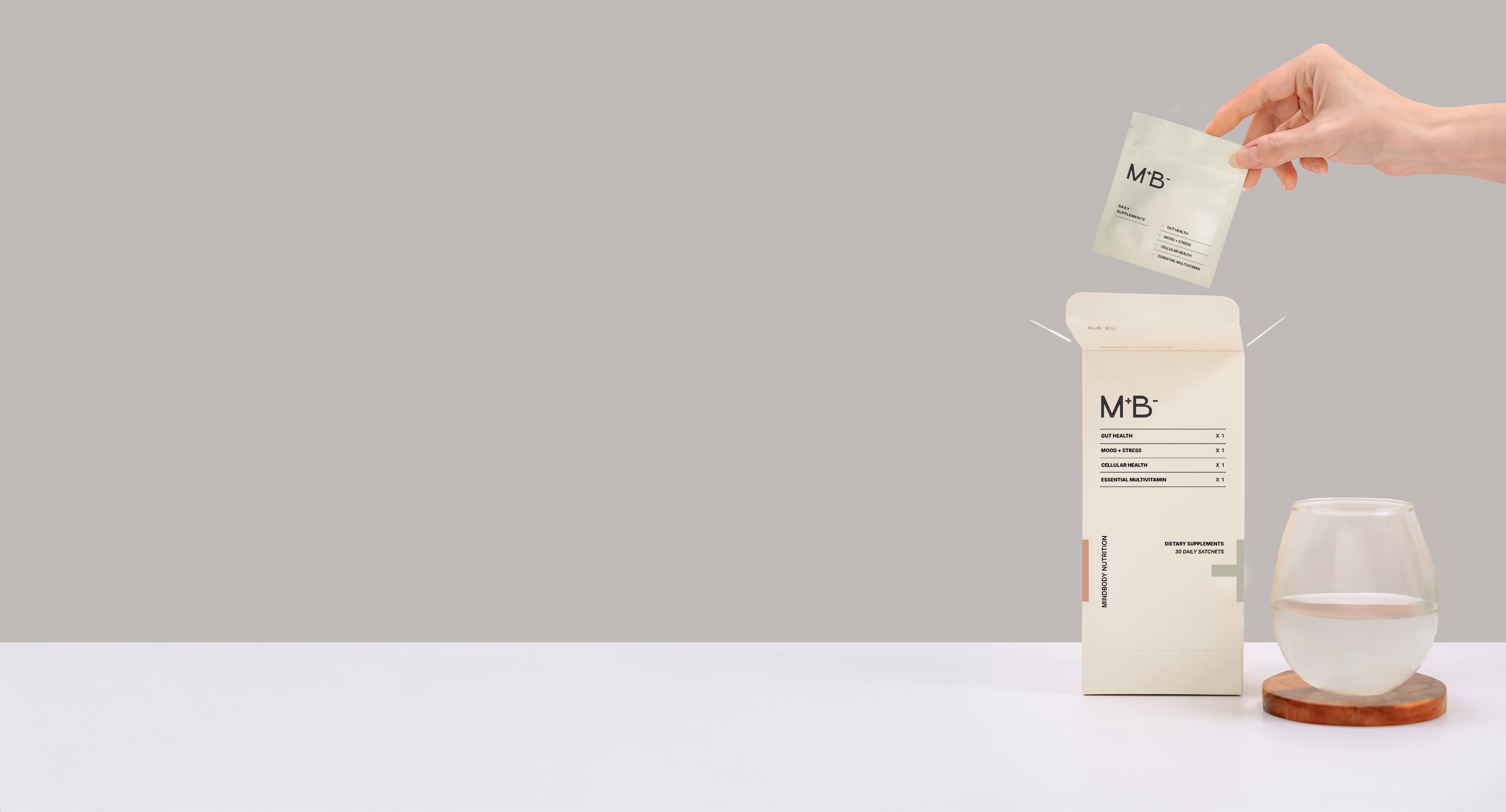Most people struggle to build consistent supplement habits. By consolidating four clinically important areas (gut, mood, cellular health, and essentials) into a single sachet, MINDBODY reduces overwhelm and increases long-term adherence.