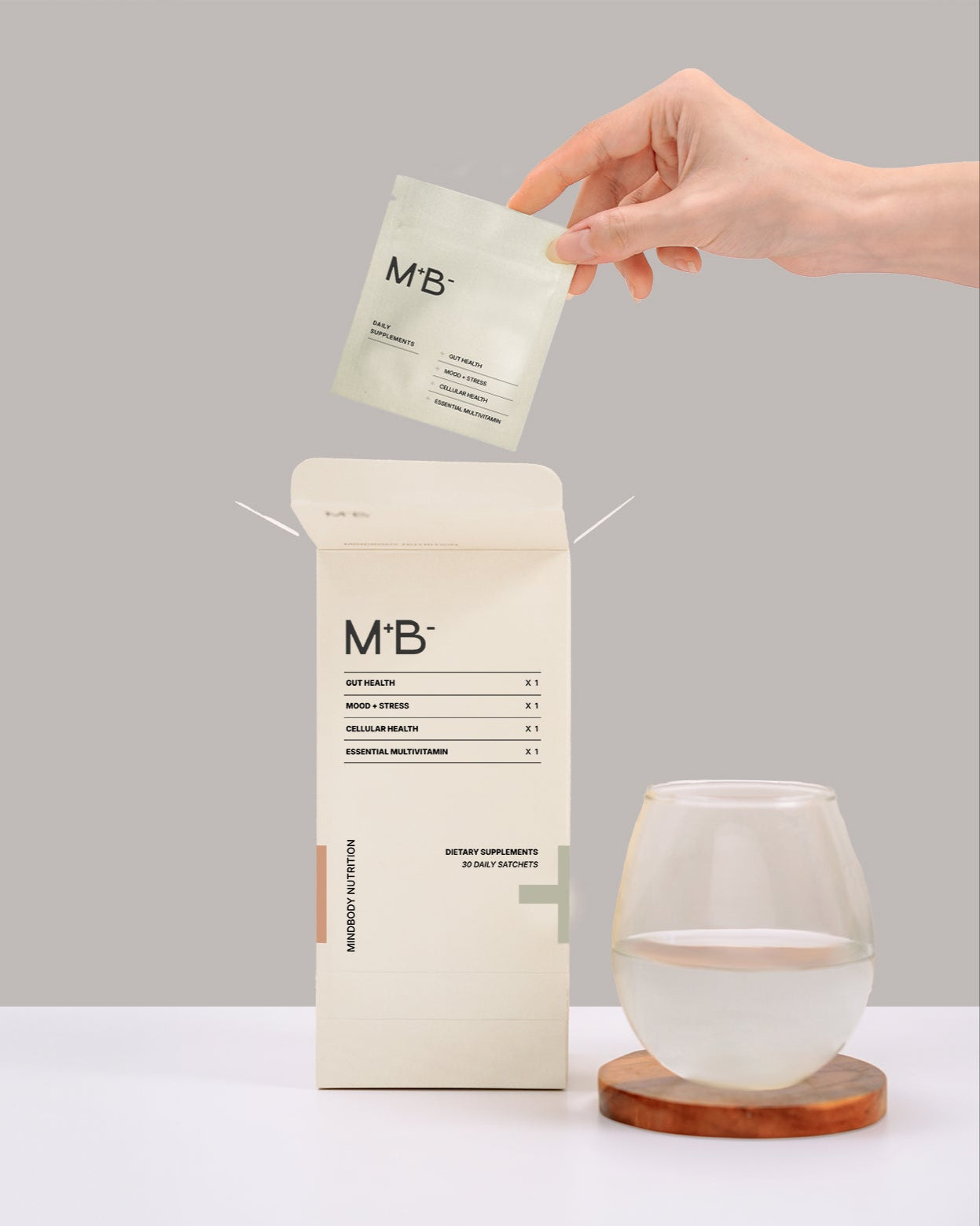 Most people struggle to build consistent supplement habits. By consolidating four clinically important areas (gut, mood, cellular health, and essentials) into a single sachet, MINDBODY reduces overwhelm and increases long-term adherence.